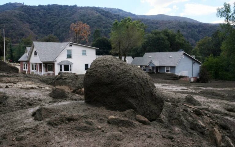 YUCAIPA, Calif. — Sudden heavy rain east of Los Angeles unleashed mudslides that plowed into homes and trapped drivers for hours on roadways while floodwaters swept away a vehicle carrying a father who was later rescued and his-2-year-old son who drowned, authorities said Friday.