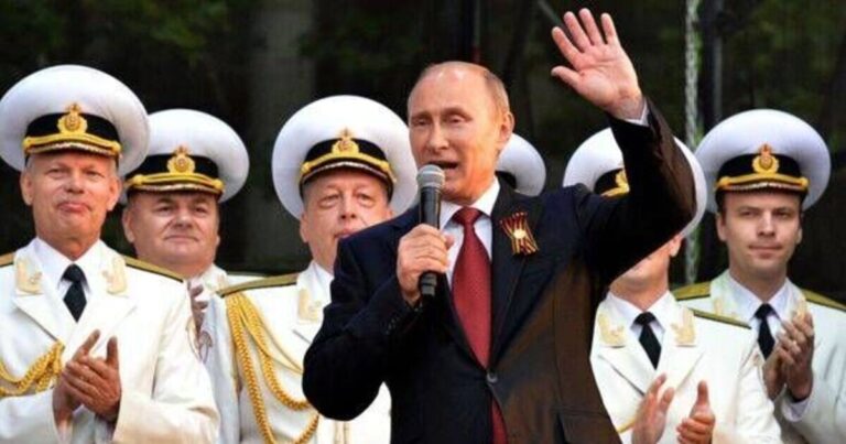 Vladimir Putin addresses a rally in Sevastopol shortly after annexing Crimea (Image: Getty)