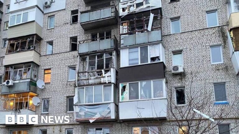 Mrs Grishko’s daughter, Alina Kalcheva, says the missile fell about 100m (328ft) from the building. “The blast wave damaged my mother’s balcony, windows, doors, and the interior of the apartment.”