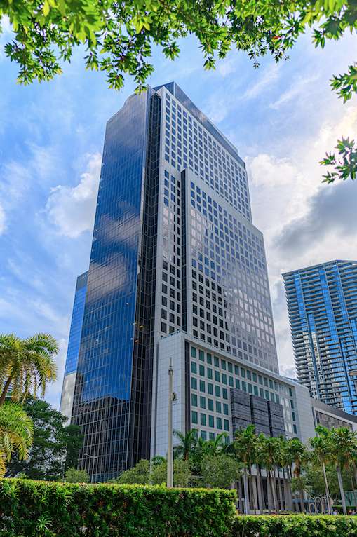 The tower offers a 30,000-square-foot landscaped plaza, private fitness center, modern conference and telepresence facilities, on-site management, and 11 levels of secure, covered parking. Located directly on Brickell Avenue, the property sits within walking distance to some of Miami’s top restaurants, banks, and luxury hotels.