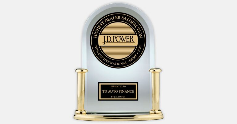 CHERRY HILL, N.J., August 14, 2025 — For the sixth consecutive year, TD Auto Finance, a division of TD Bank, N.A., received the highest ranking in Dealer Satisfaction among National Non-Captive Prime Credit Lenders, according to the J.D. Power 2025 U.S. Dealer Financing Satisfaction Study.